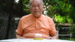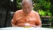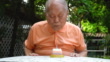 Asiatiska Senior blåser ljus i bakgård - 4K Bildbanksvideo
