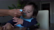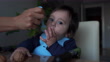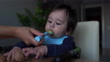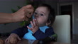 Baby Boy eating homemade broccoli soup - 4K Bildbanksvideo