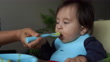 Baby Boy eating homemade broccoli soup - 4K Bildbanksvideo