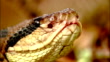 A bushmaster snake raises its head.