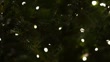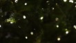 Christmas tree branches glowing with sparkling decorative fairy lights at night, creating festive bokeh