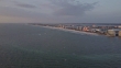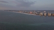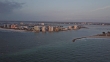 Ungraded D-Log aerial pan shot of Clearwater Beach, Clearwater Pass and Sand Key Beach in Clearwater, FL.