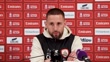 LIVERPOOL, ENGLAND - JANUARY 12: Conor Hourihane, manager of Barnsley, speaks on developing young players after their FA cup match against Liverpool during a press conference at Anfield on January 12, 2026 in Liverpool, England. (Footage by Niche Sport Media via Getty Images)