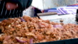 Cooking on the grill street pork and chicken tacos at a restaurant outdoor taco stand