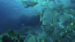 Large shoal of spadefishes (Platax orbicularis) swim over coral reef, Red Sea. (FKIB734R - Clip taken from series rushes - 22289)