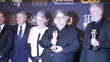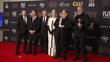 LOS ANGELES, CALIFORNIA - JANUARY 15: (L-R) Corey Campodonico, Alexander Bulkley, Gary Ungar, Lisa Henson, Guillermo del Toro, and Mark Gustafson, winners of the Best Animated Feature award for "Guillermo del Toro's Pinocchio", pose in the press room at the 28th Annual Critics Choice Awards - Press Room at the Fairmont Century Plaza on January 15, 2023 in Los Angeles, California. (Footage by Adam Finmann/Getty Images)