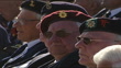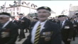 D-Day 60th Anniversary: Round up of day's events; POOLFRANCE: Normandy: Colleville-Montgomery:EXTTGV & MS D-Day veterans march pastCMS Queen Elizabeth II (pale mauve coat & hat) watchingGV Veterans marching towards pastTGV Veterans marching beside beachCMS Queen smilingCMS Veterans listening to Queen's speechQueen Elizabeth II speech SOT- What for you is a haunting memory of danger and sacrifice one summer long ago is for your country and for generations of your countrymen to come, one of the proudest moments in our long national history / I take it upon myself to express the immense debt of gratitude owed to you all / I salute you and thank you on behalf of our whole nationCUTAWAYSIDE Queen speakingLMS Queen takes seatLS & LMS HMS Gloucester, offshore, firing 21-gun salute (2 shots)MS Veterans, with joined hands, singing Auld Lang Syne (2 shots)