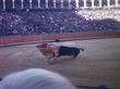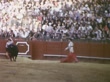 A detailed bullfighting event in Seville, with a matador showcasing his skills as he maneuvers and controls an aggressive bull, amidst a fully engaged audience in the bullring.