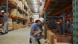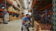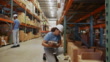 Female distribution warehouse employee works on inventory - 4K Bildbanksvideo