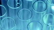 Two slow motion extreme close-up shots of an unrecognizable scientist in the background dripping transparent liquid into test tubes in a tube rack. Shoot in 8K resolution.