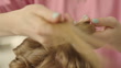 A hairdresser combs a model's red hair. - 4K Bildbanksvideo