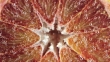 Half orange with bubbles in water.