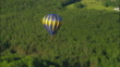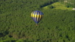 A hot air balloon drifts above a lush forest. - HD Bildbanksvideo
