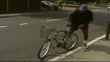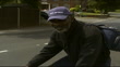 Richard Williams (father, coach and manager of Venus and Serena Williams) unlocking bicycle and gets on bicycle / MS Richard Williams on bicycle as interviewed SOT - It seems like they (Venus and Serena) are out there joking around and scared to death; it seems like they are nervous out there; just go out there and do their best / Richard Williams along past on bicycle