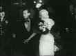 B/W 1932 PAN Jean Harlow + date in formalwear walking past crowd outdoors at premiere / documentary