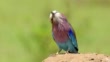 Lilac-breasted Roller, Coracias caudatus, on termite mound, Masai Mara National Reserve, Kenya, Africa - 4K Bildbanksvideo