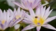 Lilly pad (Nymphaea sp.), stjärna lotus. Näckrosor och lotuses i Thailand. Små vilda bin samlar pollen. - HD Bildbanksvideo