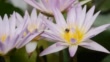Lilly pad (Nymphaea sp.), star lotus. Water lilies and lotuses of Thailand. Small wild bees collect pollen.