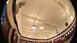GEORGETOWN UNIVERSITY: HD VARICAM: TU WS (wide angle lens) ceiling of Trophy Room w/ hanging cylinder lights TDXWS Trophy Room w/ freestanding glass covered case FG. No People.