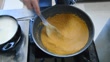 Roast semolina and white flour in melted butter in a pan and add milk.