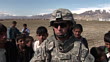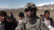 March 5, 2009 CU U.S. Army soldier being interviewed by a reporter about teaching village children the English language / Bagram, Afghanistan