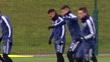 MANCHESTER, ENGLAND - MAR 21: Marcos Rojo runs drills alongside teammates Angel di Maria, Lucas Biglia, Manuel Lanzini, Nicolas Otamendi, Marcos Acuña and Giovani Lo Celso during an Argentina National Team training session at Manchester City training ground on March 21, 2018 in Manchester, England. (Footage by Niche Sport Media via Getty Images)