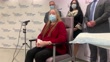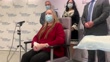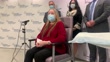 BAY SHORE, NEW YORK - MARCH 03: A medical worker at South Shore University Hospital administers the newly available Johnson & Johnson Covid-19 vaccine to Susan Maxwell-Trumble on March 03, 2021 in Bay Shore, New York. The new vaccine from the American pharmaceutical company, is a single shot vaccine that has shown 85 percent protection against severe disease and can be stored at regular refrigeration temperatures. (Footage by Spencer Platt/Getty Images)