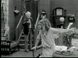 1913 B/W Medium shot Old man sneaking drink from grandfather clock while girl warns him before woman enters room / USA - Bildbanksvideo