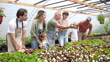Multigenerational Caucasian family, working together at the family flower nursery/greenhouse
