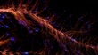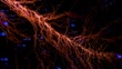 Neurodegenerative Disease - 3d rendered video. Stunning 3D animation of neuron firing with glowing synaptic connections and floating particles. Cyan and coral illuminated nerve cell with extending axons and dendrites represents the beauty of neuroscience and brain activity. Perfect for educational content about nervous system, medical documentaries on neurological disorders, tech presentations on artificial intelligence, academic research on Multiple Sclerosis and Parkinson's Disease, and futuristic films exploring consciousness and neural networks.