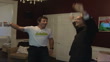 Nintendo games console 'Wii' goes on sale; Pat Cash (former Wimbledon Champion) with Eddo playing Nintendo tennis game (4 SHOTS)