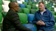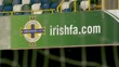Euro 2016: Northern Ireland's football success helping unite divided communities; Low angle view groundsman cutting grass on pitch in stadiumBackview children alongBlue, green and white seats in stand of National Stadium'Irish Football Association Northern Ireland' logo and 'irishfa.com' on bannerLow angle view man cutting grass on pitchGary McAllister (Chairman, Northern Ireland Supporters Club) interview SOT Reporter to camera