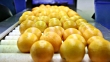 Oranges, citrus on a conveyor in a processing factory