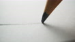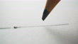 Pencil drawing a straight line on white paper. The tip of the pencil breaks.