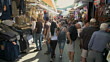 WS PAN People shopping at Carmel Market / Tel Aviv, Israel - HD Bildbanksvideo