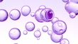 A captivating 3D render featuring delicate, translucent purple bubbles or essence drops. This elegant and clean visual evokes purity, gentle care, and advanced skincare technology. Ideal for promoting luxurious cosmetic serums, natural beauty products, organic supplements, and wellness brands. Represents deep hydration, precious ingredients, and a sophisticated approach to beauty.