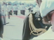 Special: Royal Tour of the Gulf:; BAHRAIN: EXTGV Queen Elizabeth II (wearing duck egg blue coat and hat with white gloves) along down gangway and shaking hand of Sheikh Isa bin Salman Al Khalifa and Prince Philip, Duke of Edinburgh along and shaking Emir's hand and side view women presenting Queen with bouquet of flowersClose shot Sheikh Isa bin Salman Al Khalifa PULL OUT over shoulder view people in line as Queen Elizabeth II along shaking handsGV girl wearing Brownies uniform waving Union Flag (union jack)Side view brownies standing in line with Bahraini flags and union jacksGV spectators lining street and waving flags as fleet of police motorbikes escorting royal motorcade along towards and past camera followed by car carrying Queen PAN people lining street waving Bahrain flag and union flagGV two brownies saluting while holding union jacks PAN girl holding Bahrain flagGV brownie holding flag of Bahrain as motorcade along pastGV Queen Elizabeth II (Wearing floral blue dress and blue hat and sunglasses) and Sheikh Isa bin Salman Al Khalifa along round corner shortly followed by Prince Philip and man and woman approach and shake hands with Queen and PhilipGV crowds watching from behind barriers holding and waving flagsGV Queen Elizabeth II left and Sheikh Isa bin Salman Al Khalifa right as speaking to each other while sitting by wall (unheard)GV Prince Philip (wearing sunglasses) sitting beside Bahraini representativeGV jockeys in red jerseys riding Arab horses as being walked around track by trainersSide view horses in position in starting gate and horse along into starting gateClose side view jockeys on horses in starting stalls and away right as gates openPAN jockeys on horses as racing around trackGV jockeys along track towards camera and people watching behind barrier foreground left PAN as horses along past cameraSAUDI ARABIA: Riyadh: Riyadh Airport:EXTGV Guard of Honour standing in ranks