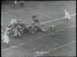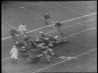 Score reversed after illegal fifth down between Cornell and Dartmouth at Memorial Field in Hanover, New Hampshire / Slow motion shot of Cornell ball on the 6 yard line for the first down of the Fifth Down Game / Walter Shoals carrying on the second down with Dartmouth 3 and Cornell 0 / slow motion shot of the third down / Cornell has a five yard penalty for too much time outs / slow motion shot of fourth down / football is passed into the end zone.