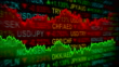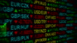 Seamless currency rate chart animation showing US Dollar (USD), Euro (EUR), Japanese Yen (JPY), Great British Pound (GBP), Australian Dollar (AUD), Canadian dollar (CAD), Swiss franc (CHF), Chinese Renminbi (CNH), Hong Kong dollar (HKD), New Zealand dollar (NZD), Turkish Lira (TRY), 4K Loop