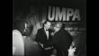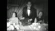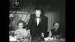 Seated audience applauds at the Show-A-Rama awards in Kansas City / actor Don Knotts receives award for his work in movie 'The Reluctant Astronaut' / Knotts on stage smiling while audience applauds / sits down at table / gets back up to show award to camera.