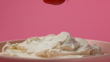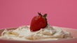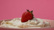 Studio shooting, high speed shooting - A strawberry falling on cream cheese in pink background - HD Bildbanksvideo