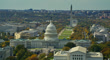 Helicopter shot of the Supreme Court, the US Capitol Building and surrounding congressional office buildings in Washington, D.C. on a hazy afternoon in Fall.8K RAW version available. Please contact sales for more information.