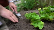 The young man is planting flowers in the garden - 4K Bildbanksvideo