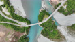 Aerial view of bridge connecting two side over Rakaia Gorge, Canterbury Region, New Zealand.