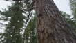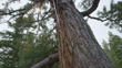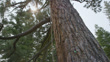 Low angle tracking shot up the trunk of a sugar pine tree (Pinus lambertiana) with a climbing rope running up the side and an anonymous climber hoisting themselves up towards the tree canopy, Yosemite, California, USA (FKAD627H - Clip taken from programme rushes - 333938)