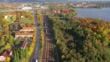Two moving trains, low sun, Norrviken trainstation, Sollentuna, Stockholm - 4K Bildbanksvideo