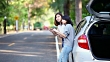 Two woman have car trouble waiting for help