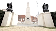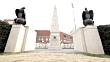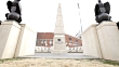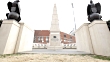 LA MS DOLLY BACK/FRONT Veterans memorial w/ eagle statues & pillar, Gaylord Family Oklahoma Memorial Stadium BG.