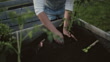 MS Kvinna plantera krukväxt i trädgårdsjord av upphöjd säng - 4K Bildbanksvideo