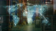 World map with logistic network distribution on Camera moving between shelves in Warehouse interior.logistic and transportation technology concept. - 4K Bildbanksvideo